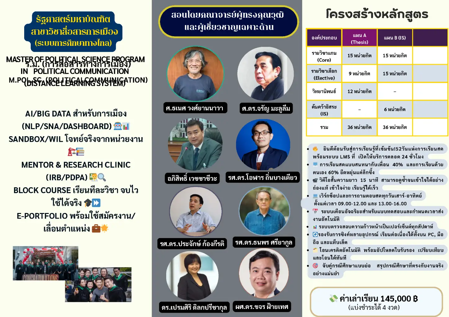 ปริญญาโท หลักสูตรรัฐศาสตรมหาบัณฑิต สาขาสื่อสารการเมือง