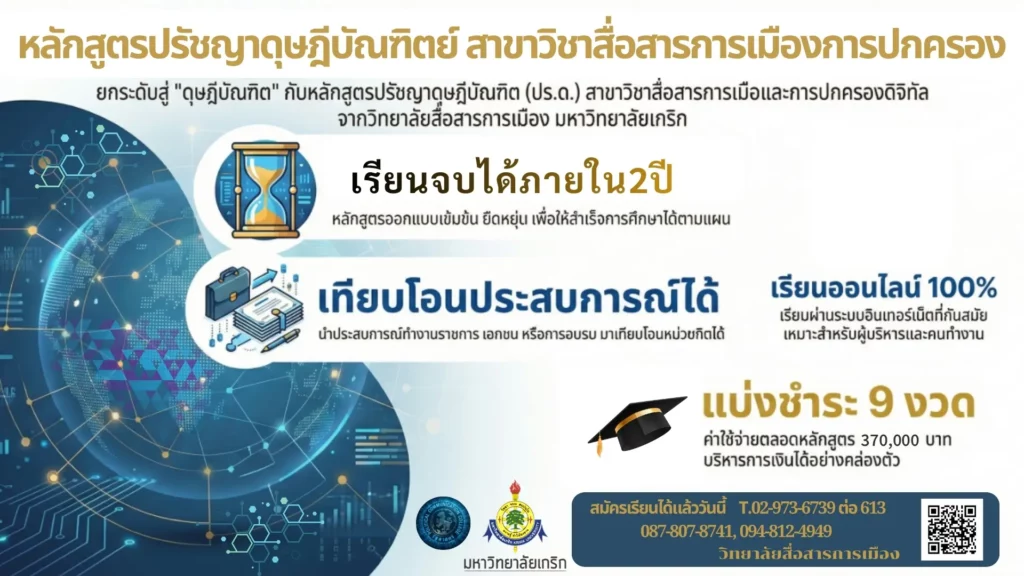 ปริญญาเอก หลักสูตรปรัชญาดุษฎีบัณฑิต สาขาสื่อสารการเมือง